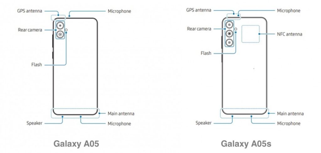 There was another difference between the 2022 models in that the “s” phone had NFC while the regular A04 did not. According to the schematic, this will also be the case this year.