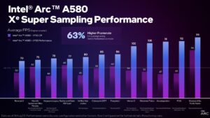 With specs similar to the A750, you can expect a fairly similar performance. With XeSS, Intel’s AI-based image upscaling and reconstruction technology, the A580 is targeting a 1080p high settings experience.