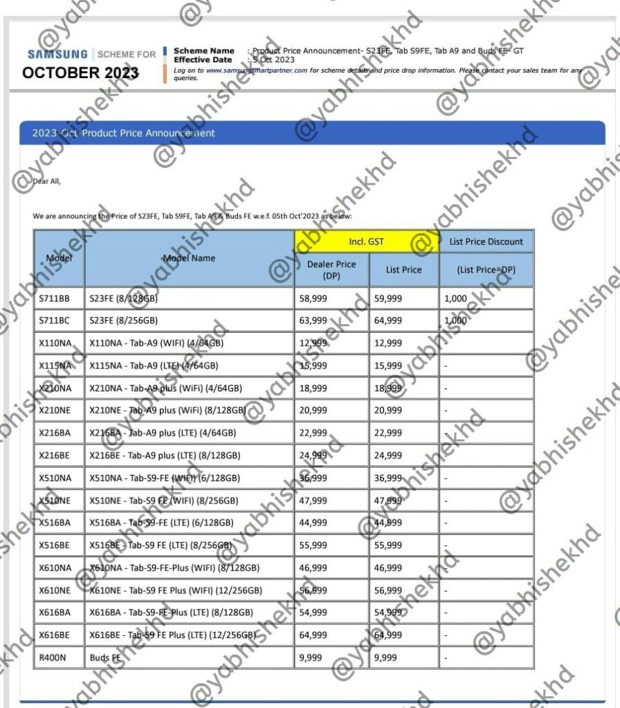 According to the tipster, the new Galaxy Tab A9 & Galaxy Tab A9+ will be soon launching in India. Both of them will be arriving in Wifi only & LTE variants. Sadly, no 5G variant as of now. The new Galaxy Tab A9 with 4GB+64GB Wifi costs Rs.12,999/- whereas the LTE variant costs Rs.15,999/- in India.