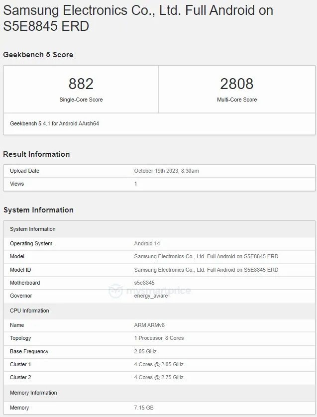According to Geekbench, the upcoming Exynos 1480 chipset has the model number S5E8845. According to the listing, the Exynos 1480 will have four efficiency cores clocked at 2.05GHz and four performance cores clocked at 2.75GHz. Its base frequency is 2.05GHz, according to the listing. Also revealed by the benchmark test is that Samsung’s Xclipse 530 GPU will be paired with the Exynos 1480 chipset, utilizing AMD’s RDNA 2 graphics architecture similar to the Exynos 2200s.