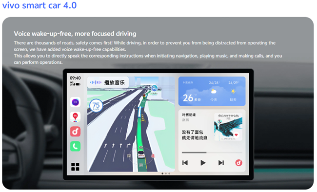 In addition, Vivo Smart Car 4.0 technology improves car connectivity and offers features like voice-controlled navigation, music, and calling control. This feature also provides users with access to the Parking assistant, which helps them locate nearby parking lots easily. Additionally, it offers instant location recognition and simplifies payments.