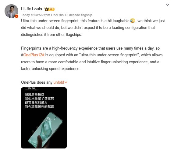 With ultra-thin under-screen fingerprint technology, you’ll be able to unlock your device quickly and reliably. This makes unlocking seamless and quick for users. As a result of this innovation, Li Jie expects the OnePlus 12 to stand out from its competitors.