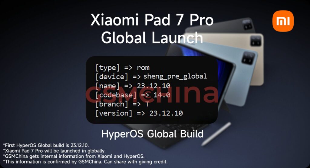GSMChina reports that the internal HyperOS build for the Xiaomi Pad 7 Pro has been spotted for the first time. According to reports, the Pad 7 Pro will be released globally based on the existence of a global build of HyperOS. The report does not reveal any details about the device’s specifications.