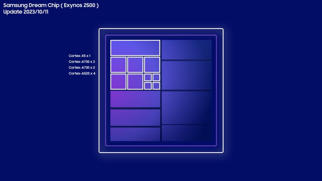 The top Cortex-X5 core of the Exynos 2500 is expected to run at speeds between 3.2 GHz and 3.3 GHz. In addition, three of its Cortex-A730 cores are likely to run at 2.5 GHz or 2.3 GHz. The speeds of the Cortex-A720 cores in the Exynos 2400 are significantly lower.
