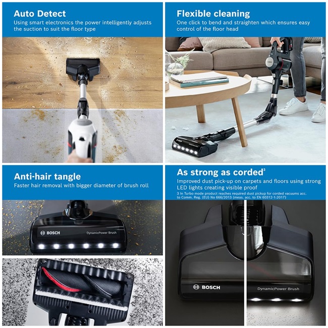 All types of dust can be pulled away with the TurboSpin motor’s powerful 66,000rpm speed. According to Bosch, the Unlimited 7 Stick captures over 99.9% of dust. Based on the manufacturer, the unit is powered by a 3.0 Ah battery that can clean up to 1000 square feet.