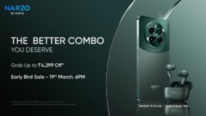 The early bird sale begins March 19 at 6 PM IST, six hours after the phone is announced. With the Narzo 70 Pro, Realme will bundle the Buds T300 wireless earphones, which cost INR2,299.