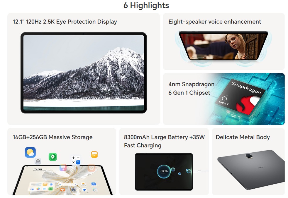 The Honor Pad 9 will be powered by a Snapdragon 6 Gen 1 processor. Besides 8GB of RAM, it has 8GB of virtual RAM and 256GB of onboard storage. There is confirmation that the tablet will have an 8300mAh battery. MagicOS 7.2 will be pre-installed.