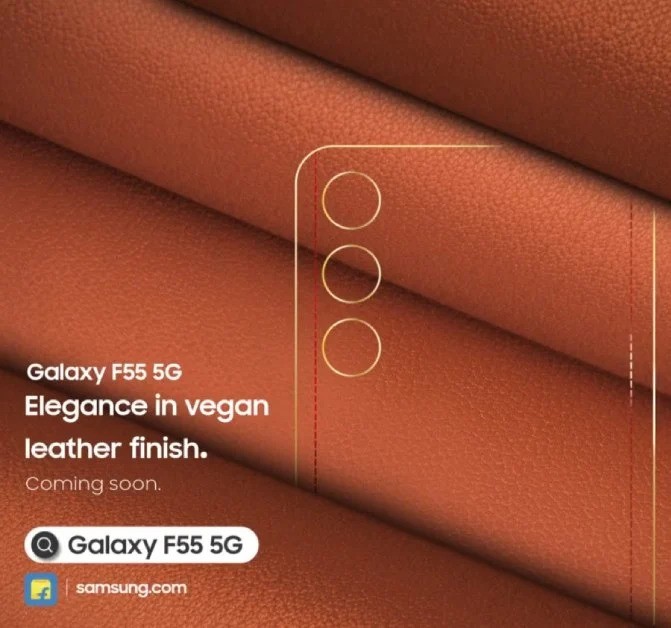 As with the C55, the back cover of the smartphone has a stitched design made of vegan leather. Like the C55, the teaser reveals an Orange color option, but we expect a Black variant as well. In terms of specs, no changes will be made on the Galaxy M55 or C55.