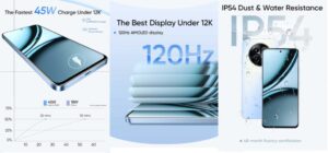 Realme Narzo 70x 5G will arrive with a 6.67-inch FHD+ (2400×1080p) Samsung E4 AMOLED display with a 120Hz refresh rate. It comes with an in-display fingerprint scanner and 2000-nits of peak brightness. The device also gets Rainwater Smart Touch, and Sunlight Screen technology for better outdoor readability.