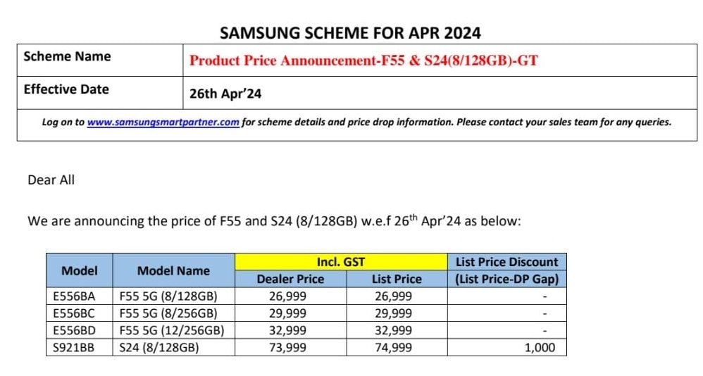 The Samsung Galaxy F55 5G price has been leaked by user yabhishekhd on X (formerly Twitter). The phone will be available in three memory configurations.