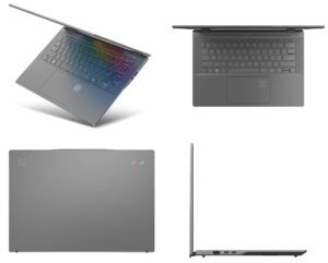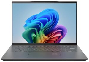 In Microsoft Copilot mode, the trackpad’s symbols and the lid of the laptop’s display light up. Qualcomm Snapdragon X Elite processors are paired with 16GB of RAM and up to 1TB of PCIe 4 SSD on the Swift 14 AI. Besides WiFi 7, the laptop is Bluetooth 5.4 compatible, and its 1440p webcam has an infrared camera for facial recognition login on Windows.