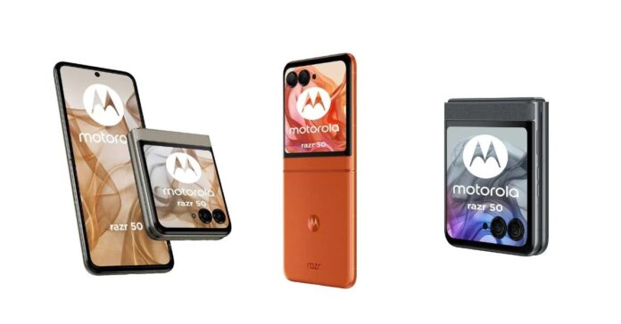 The new Motorola RAZR 50 is powered by MediaTek Dimensity 7300x SoC coupled with 8GB/12GB RAM and 256GB/512GB storage. The new Motorola RAZR 50 features a 50MP outer main camera with an aperture of f/1.88 with OIS coupled with a 13MP SK Hynix Hi1336 ultra-wide sensor with f/2.2 aperture. There is a 32MP OmniVision OV32B40 selfie shooter with an f/2.2 aperture.