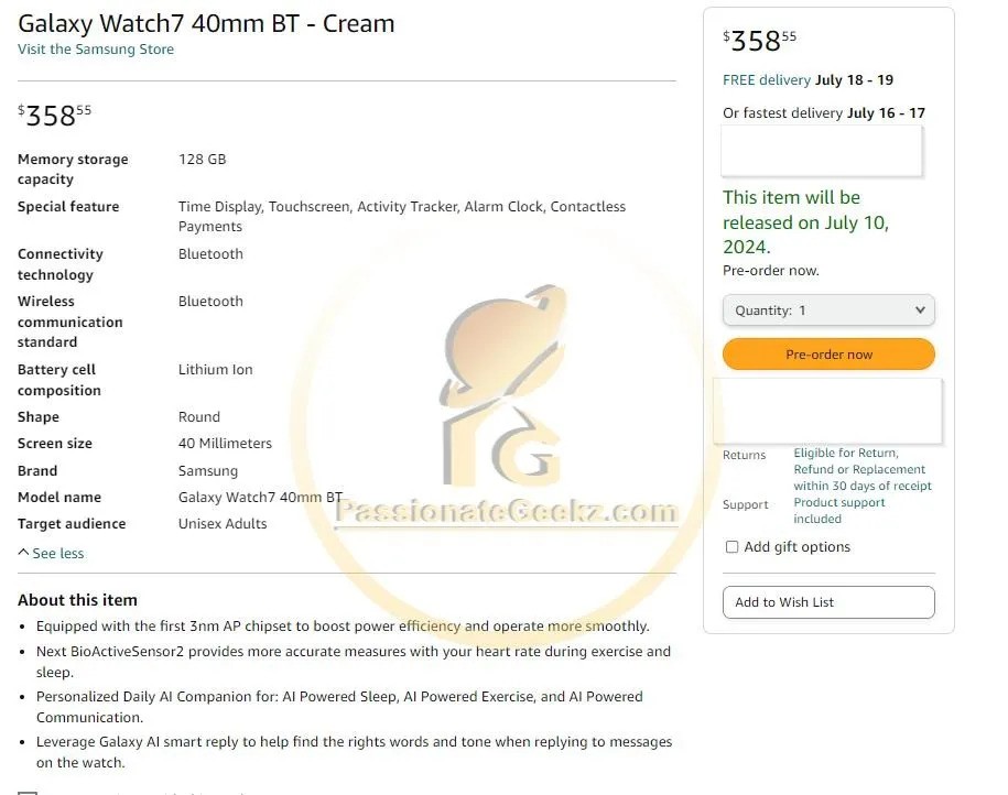 Samsung Galaxy Watch7 is scheduled to go on sale on July 16th, according to Amazon. The watch will cost $358.55 CAD (Rs.21,900/-).