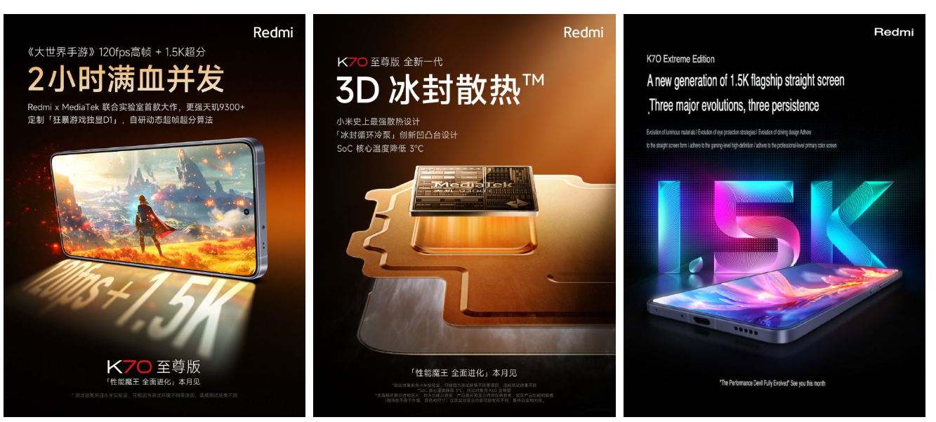 The Redmi K70 Ultra is powered by the MediaTek Dimensity 9300+ chipset. Additionally, the device features an independent graphics chip called D1. The D1 chip, which focuses primarily on gaming, is the phone’s highlight. According to the company, it has a 1.5K resolution 144Hz OLED flat display, which provides “the best dark light eye protection” in the industry. Furthermore, the company also introduced a new 3D Ice Cooling system that, according to the company, reduces temperature by up to 3 degrees.