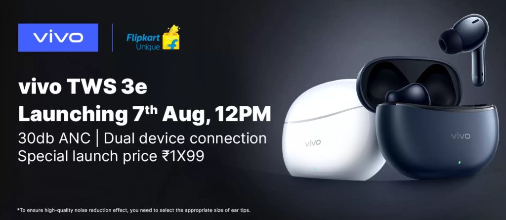 Vivo’s V40 series smartphones will debut in India on August 7. As part of the same event, the brand unveiled its new TWS earphones. Vivo will be offering the TWS 3e shortly. It has been confirmed that Flipkart will carry them. The key specifications and features of the audio device were also revealed, along with its special launch price.