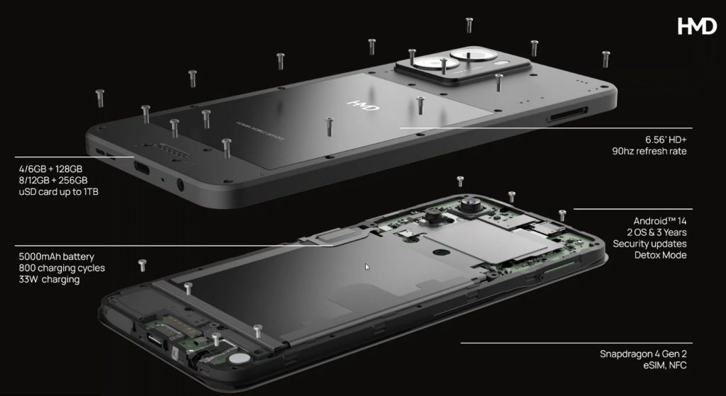 Due to its semi-transparent plastic shell, the HMD Fusion, including its battery, screen, and other key components, is easy to repair. HMD will also offer spare parts through iFixit over the next seven years.