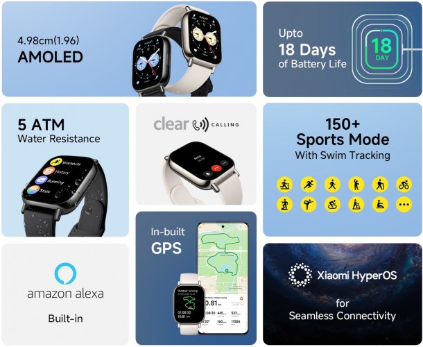 HyperOS runs on the Redmi Watch 5 Lite, which is compatible with smartphones running Android 6 or iOS 12 and above. Additionally, it supports emojis and the Hindi language. It supports Bluetooth calling and comes with a speaker and two microphones for environmental noise cancellation (ENC).