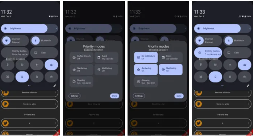 Android 15 QPR1 Beta 2, released last month, has changed that. In the recent update, Google not only updated the Priority Modes menu in the Settings app but also made its Quick Settings tile fully functional after enabling Priority Modes. Priority Modes have been given their own Quick Settings tile, which opens up a dialogue that lets you quickly select which mode to enable. If any Priority Modes are enabled, the tile will tell you.