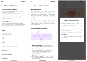 Other health-centric upgrades include a Wrist Temperature feature that establishes a baseline after five nights of data collection and a 60-second Checkup. This quick scan evaluates seven health metrics, such as blood oxygen levels, sleep analysis, and ECG data, offering insights into heart health and snoring risks. Users can also track their wellness trends with the new Health Insights and Health Journey tools.
