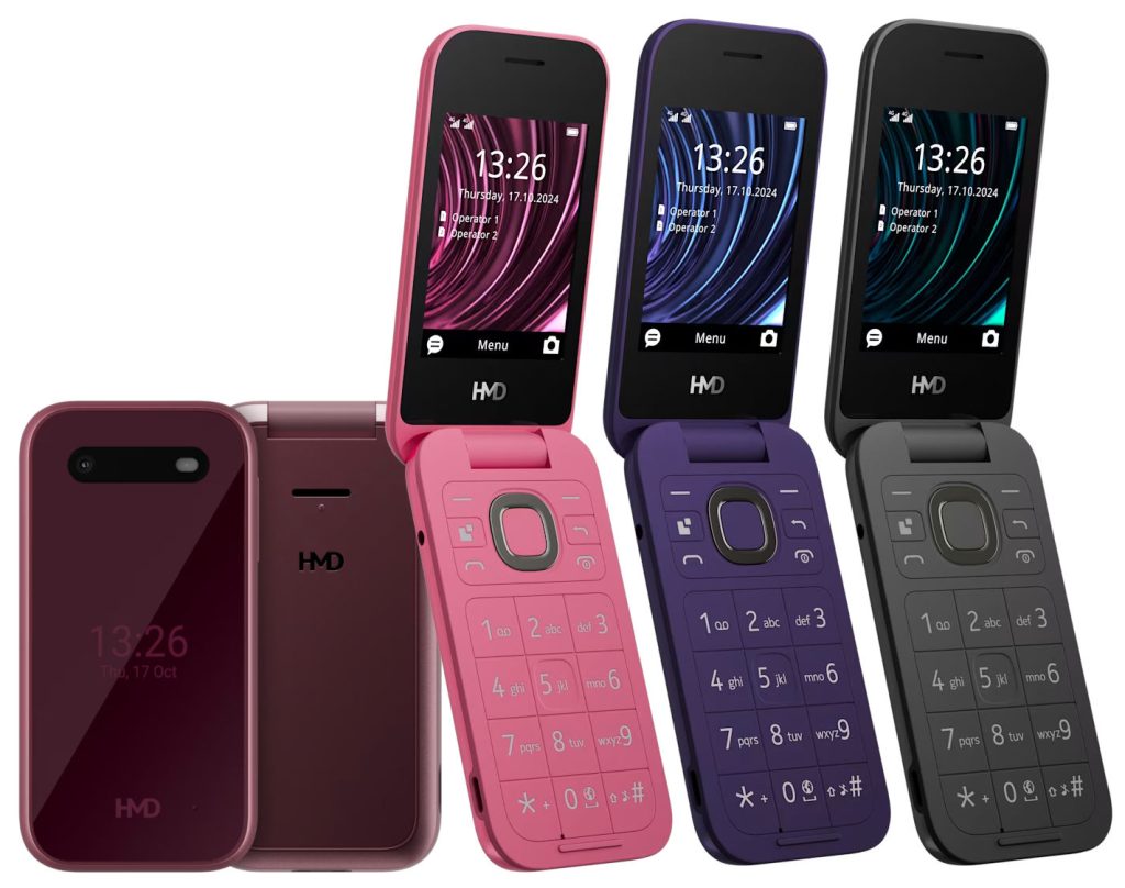Of course, the 2660 Flip is a clamshell phone available in various vibrant hues, such as Twilight Violet, Raspberry Red, and the more conventional Cosy Black.