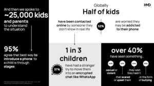 According to a recent HMD poll of 10,000 parents, 75% of them were worried about the risks associated with the internet, and 65% were concerned about how smartphone usage would affect their kids’ mental health. Furthermore, more than half of the parents polled expressed remorse about giving their kids cellphones at such a young age.