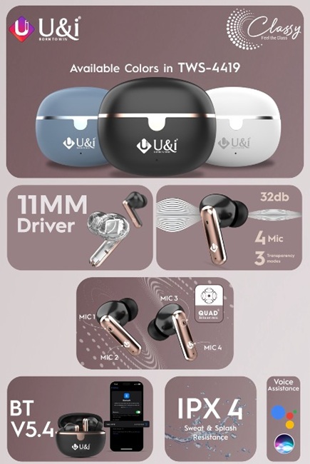 The Classy Series features six models of TWS earbuds and neckbands: TWS-9009, TWS-4419, UiNB-4347, UiNB-2142, UiNB-2151, and UiNB-1098. According to the manufacturer, these audio devices offer advanced features and reliable performance to cater to a wide range of user needs.