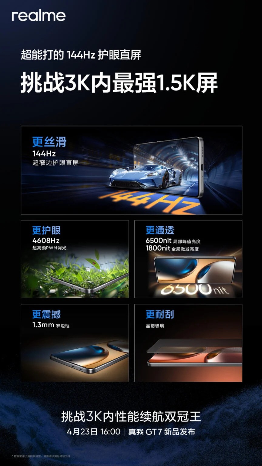 On April 23, Realme will unveil the Realme GT 7 in China. It will be equipped with the newly unveiled Dimensity 9400 Plus chipset. Just a few days before its launch, the GT 7’s display has been officially unveiled. According to the brand, the smartphone will feature a top-tier flat panel designed for performance, protection, and visual comfort.