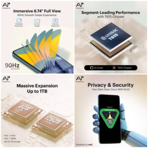 The new Ai+ Pulse features a 6.74-inch HD+ IPS LCD display with a 90Hz refresh rate and a 19.5:9 aspect ratio. The Unisoc T615 SoC powers the Ai+ Pulse and is available with 4GB, 6GB of RAM and 64GB or 128GB of storage.