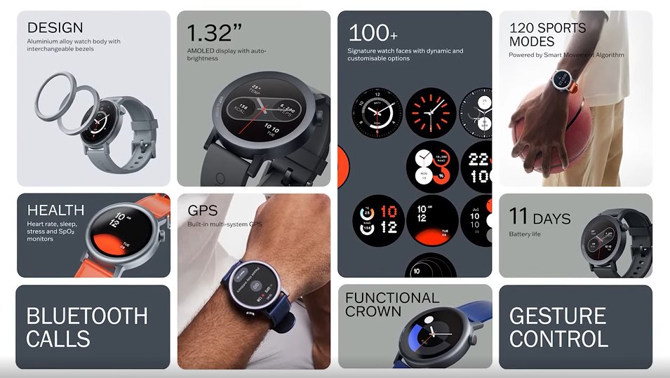 The new CMF Watch Pro will sport a 1.32-inch AMOLED (466 x 466p) display with 620 nits of peak brightness. The smartwatch is built out of a premium Aluminium alloy watch case which measures 11.4mm thick and weighs 44.1g. The smartwatch is also IP68 rated making it dust and water-resistant. There is a functional crown, gesture control, Bluetooth calls with artificial intelligence noise reduction, notification alerts, and remote control of the camera.
