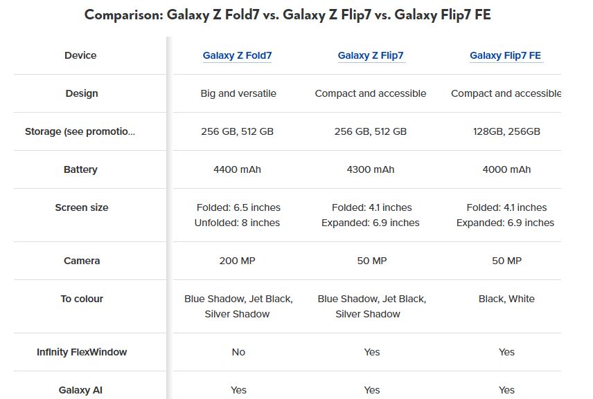The device packs a 4000 mAh battery with 25W fast charging & 15W wireless charging. It runs on Android 16 with One UI8 on top. It folds into a pocket-friendly size (85.1 x 71.9 x 14.9 mm) while remaining lightweight at 187g. When unfolded (165.1 x 71.9 x 6.9 mm).